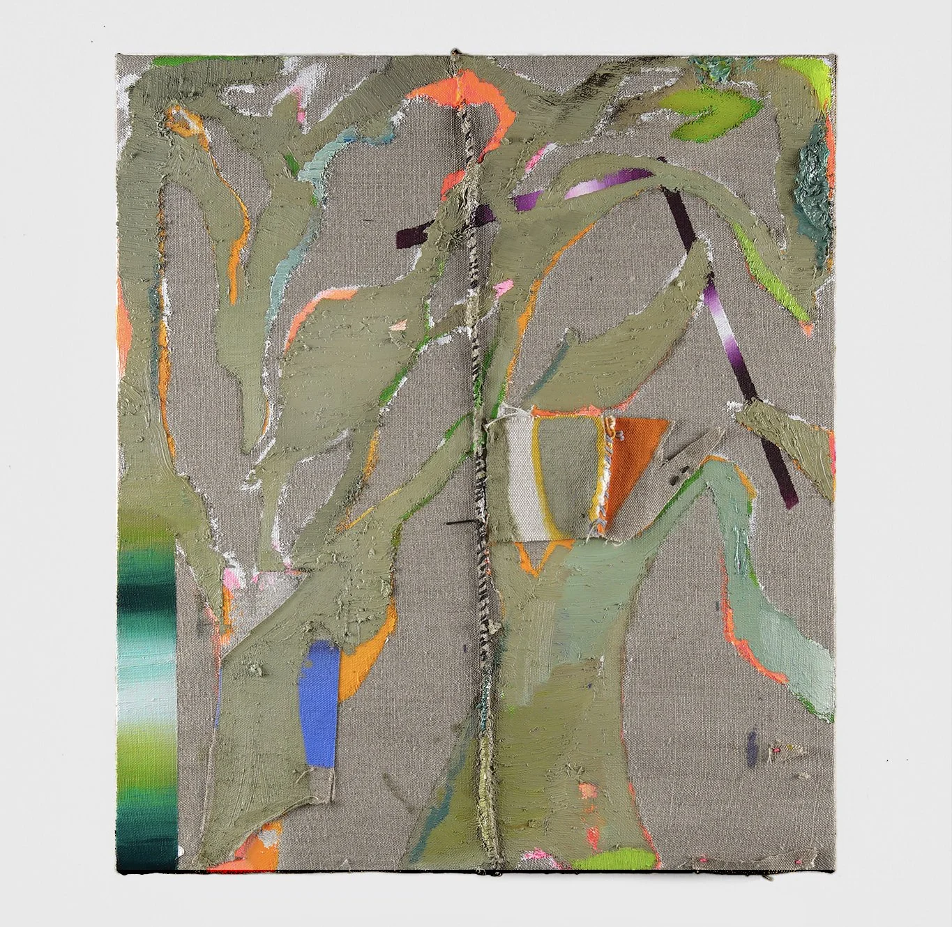 Cripsis, 2020 / oil, acrylic and recycled fabric on sewn linen / 45 x 40 cm